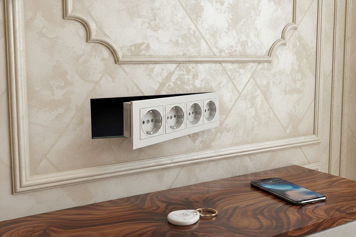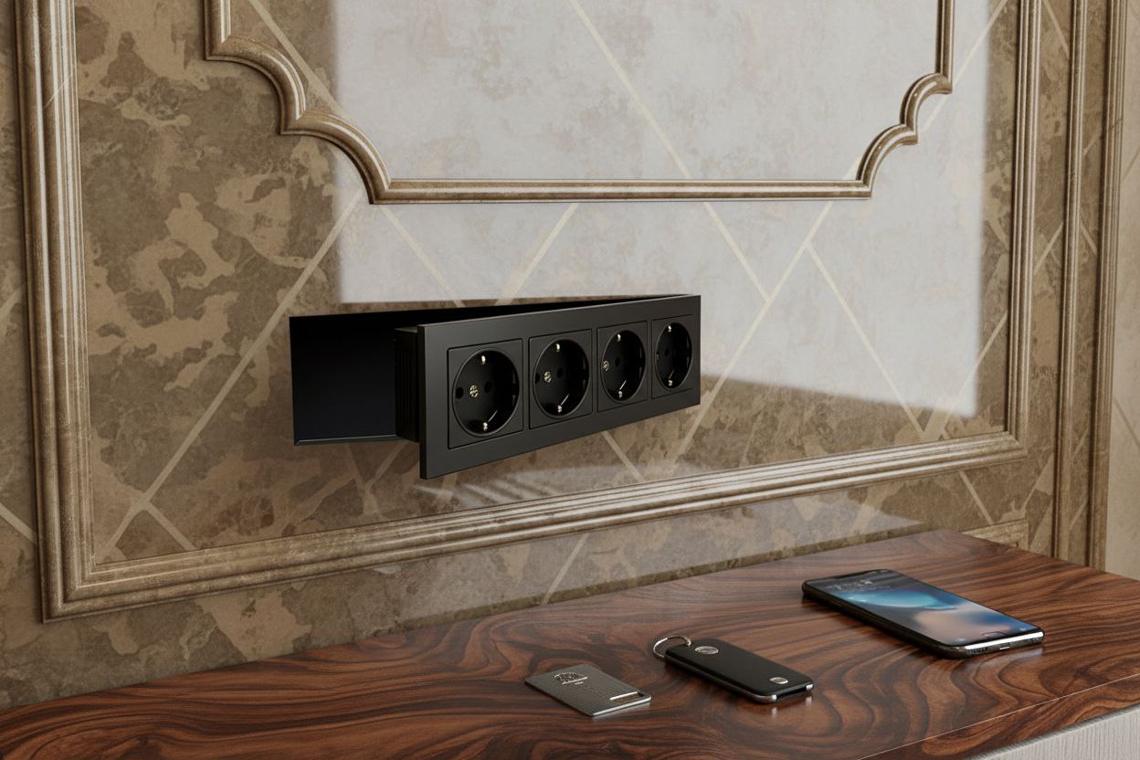 Абсолютная маскировка: Корпус встраивается в стену и рассчитан на монтаж любых электроустановочных изделий (розеток, выключателей). Снаружи — элемент декора, внутри — стальной монолит.